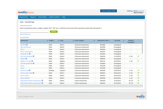 EdifyAssess is a comprehensive cloud-based enterprise platform that can manage all aspects of an organization’s assessment program – from assessment item creation through assessment administration to sophisticated data analytics of student responses. Its scalability and security features make it the ideal solution for day-to-day formative classroom assessments as well as for large-scale district-wide testing. EdifyAssess provides a simple and intuitive user interface which teachers and students have come to love. Every day thousands of teachers use EdifyAssess to manage and deliver assessments in their classrooms and students take these assessments using browser-based assessment players, mobile devices, clickers and scanned bubble sheets.